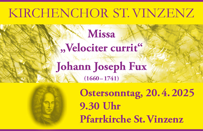 Am Ostersonntag, 20. April,dürfen wir wieder mit großer Freude dem Kirchenchor St. Vinzenz lauschen,der gemeinsam mit einem großartigen Orchester und Solisten die Festmesse gestalten wird.